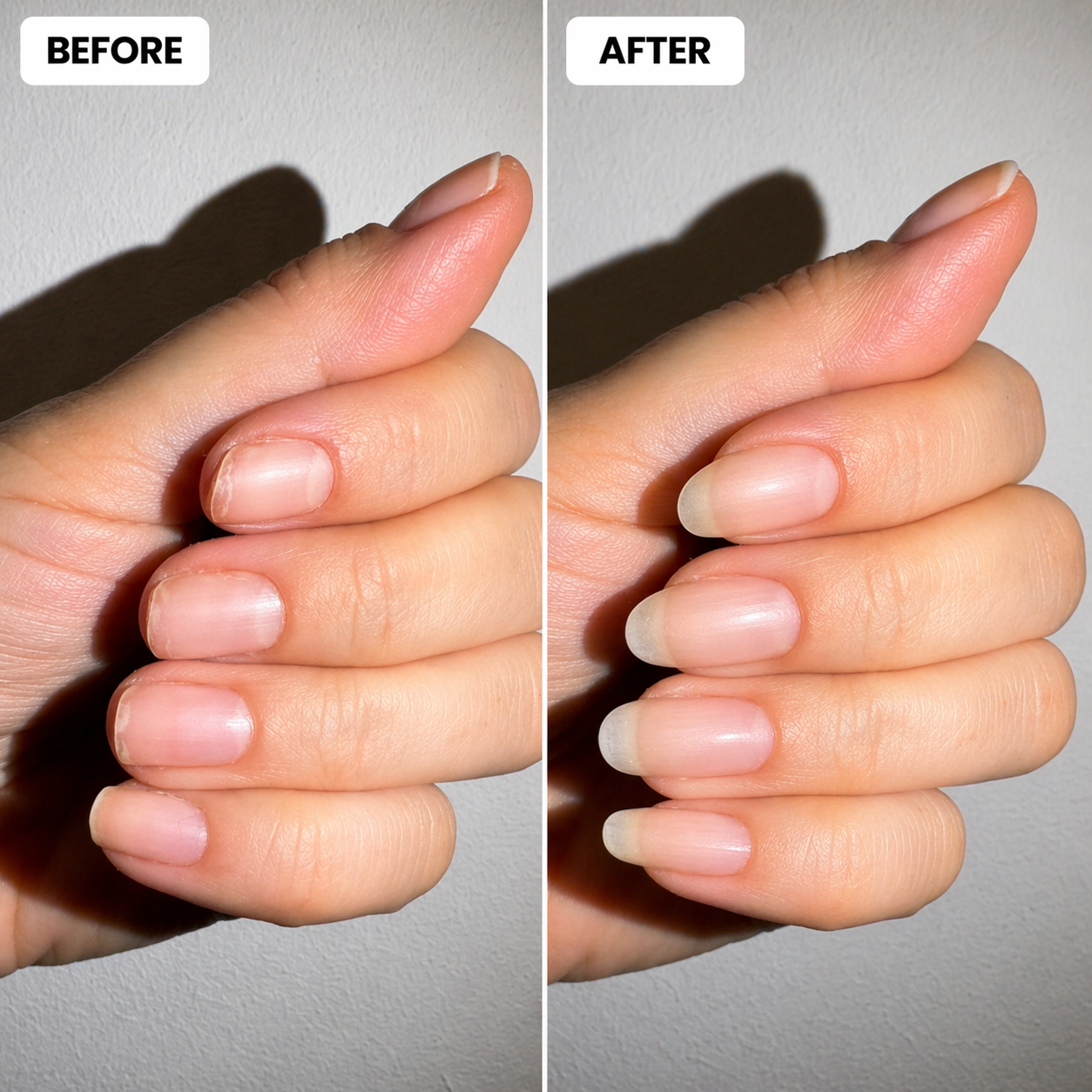 Our formula targets weak, brittle nails at the source - helping to repair damage, strengthen structure and support real nail growth. So your nails don’t just look shiny...